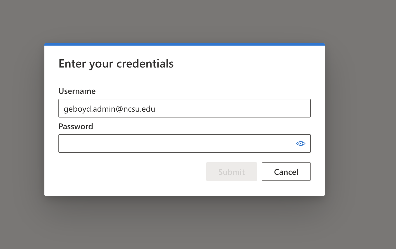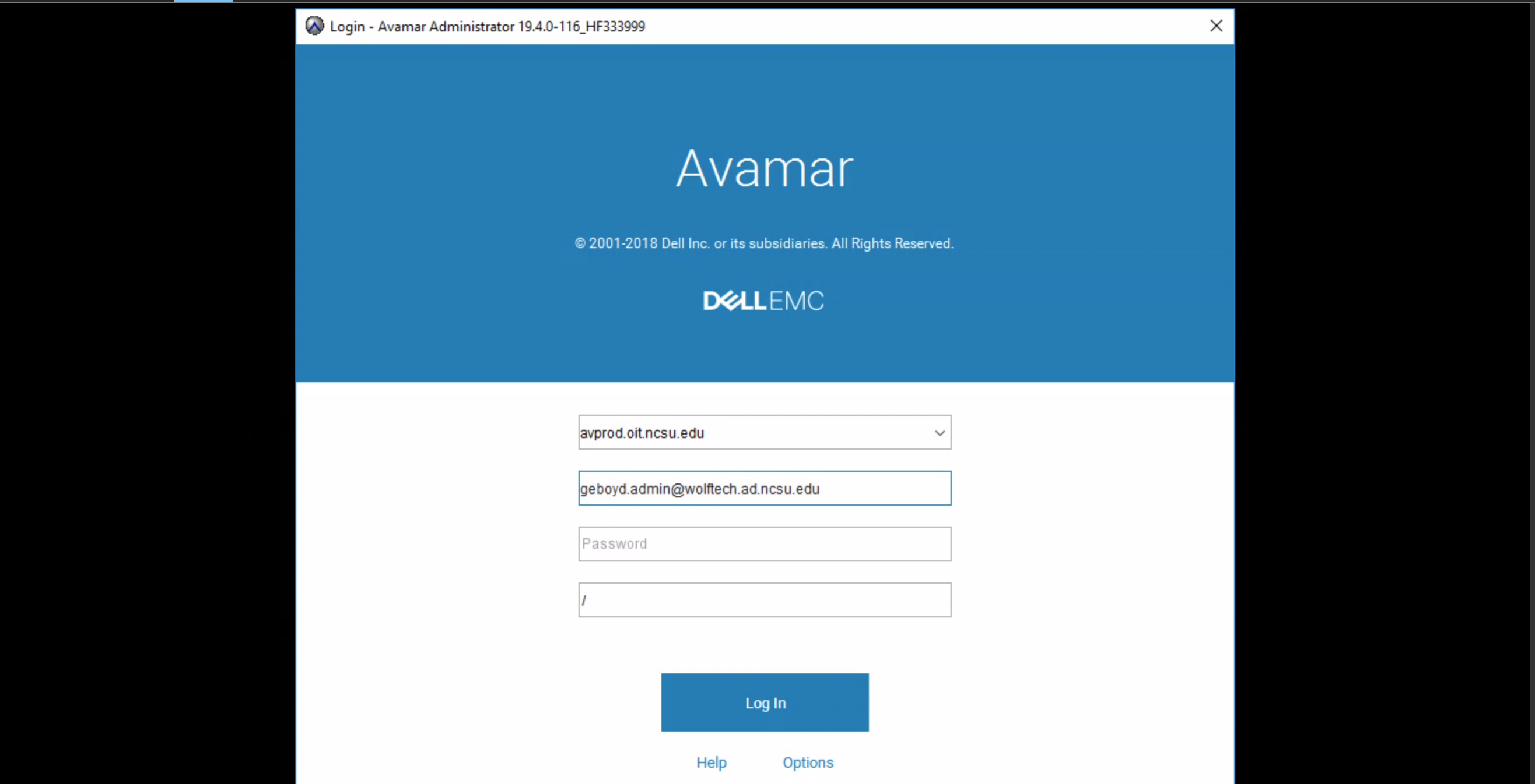 Fill in username: .admin@wolftech.ad.ncsu.edu (the complete .admin username)