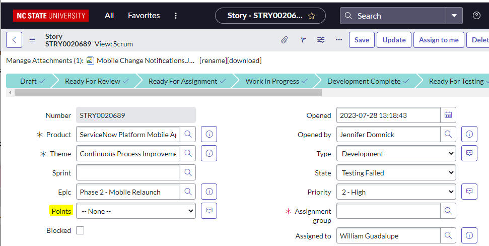 - Once the 'State' is moved to 'Development Complete,' the 'Actual End Date' and 'Actual Effort' on the 'Related Records' tab becomes mandatory.