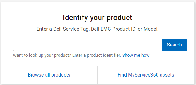 • Click Detect PC to auto-detect your product, or enter your computer’s Service Tag in the Enter a Service Tag or Express Service Code field, or click Browse all products to browse to your computer model. Your device Service Tag can be found on the bottom of your asset or, if properly labelled, listed as the Serial: "ABCD123" on your device label.