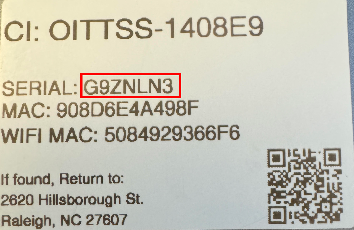 • If you do not have a device label, please submit a ticket through the help desk and the OIT_DESKTOP_SUPPORT team can print and provide a new label.