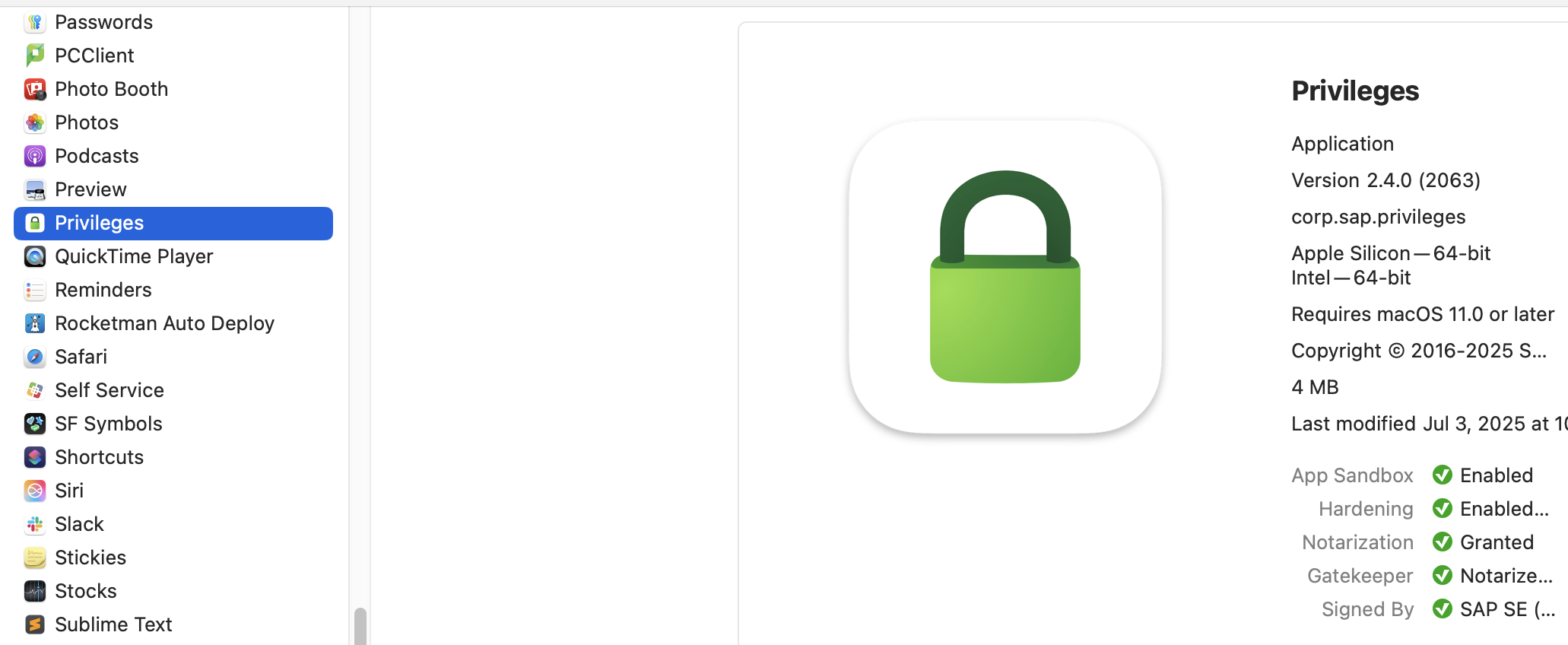 Keywords: macOS, admin, elevation, rights, time, minutes, compliance, Device, Apple, Computer, privileges, sap, privileges.app