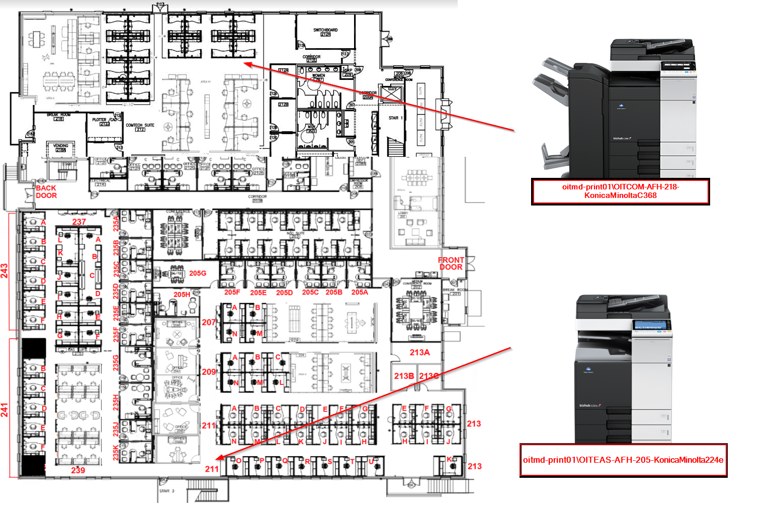 \\OITMD-Print01\OITEAS-AFH-205-KonicaMinolta224e for the printer located on the north side of AFTC.
