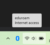 - Verify that the device connects to Eduroam. Unplug the network cable and the device should move to a wireless connection. Validate this by hovering over the wireless connection at the bottom right taskbar near the clock and make sure that it is connected to the Eduroam network.