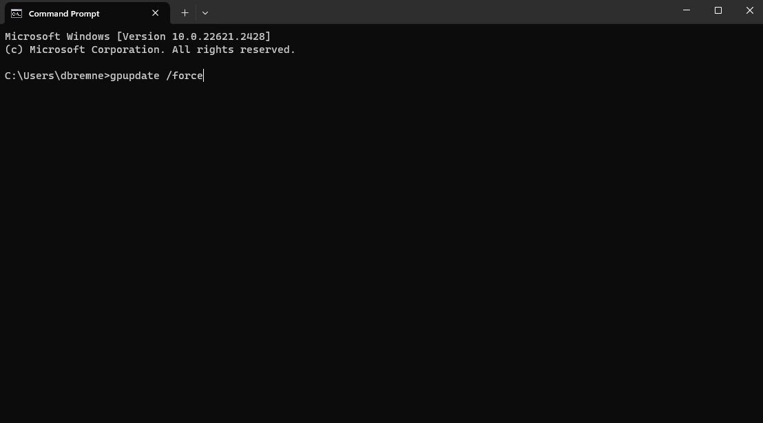 - Run a command window from the start menu. (Cmd) Run command gpupdate /force (admin not needed for this action)