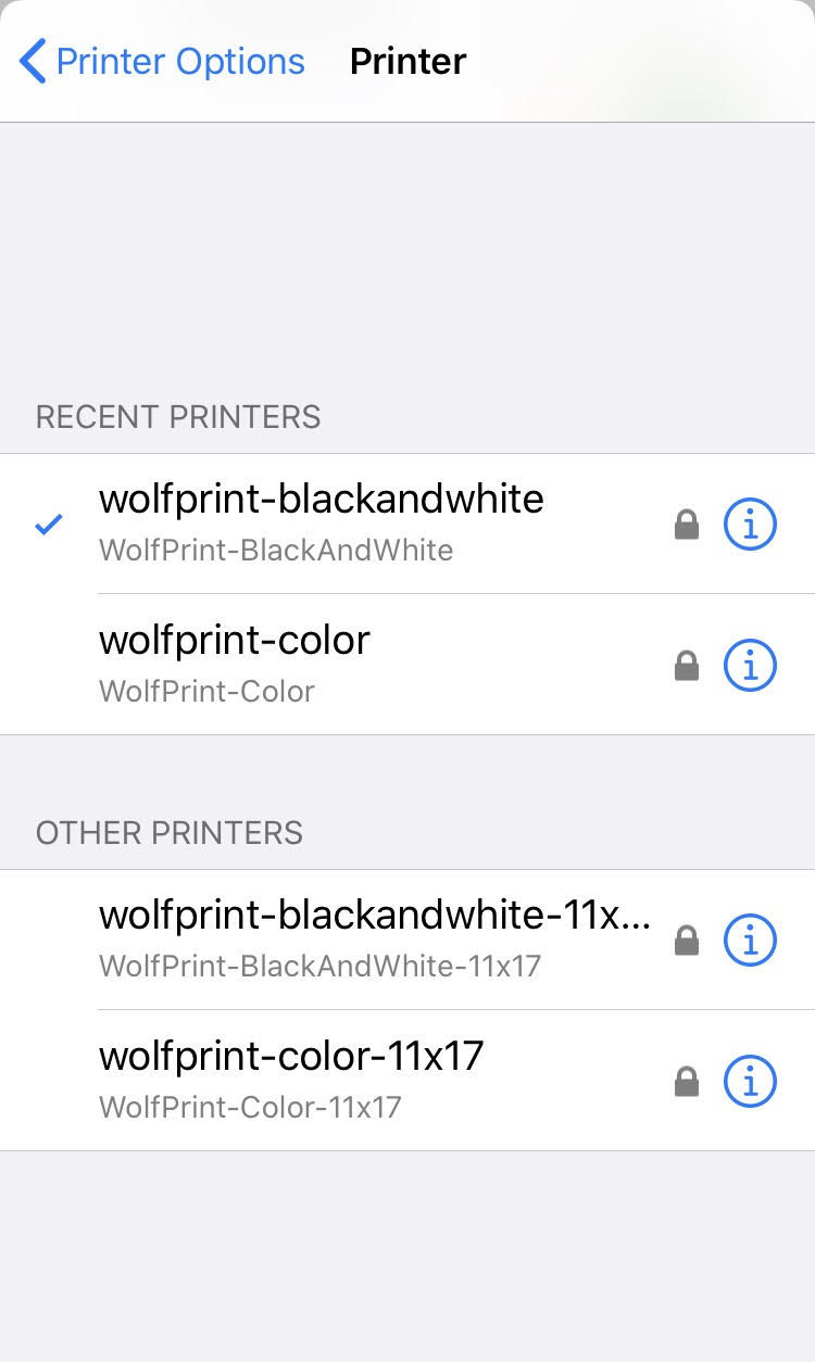 - Print like you normally would from your device, selecting the desired WolfPrint FollowMe Printer.