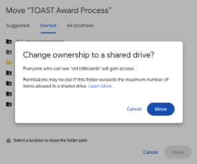 5. Then click All Locations > Shared drives and then select the appropriate Shared drive and folder location to move items into.
