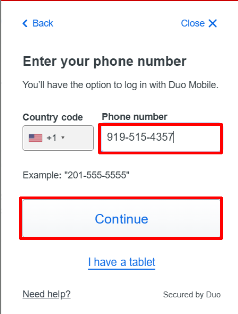 - After your computer shows, "Added Duo Mobile," select Continue.