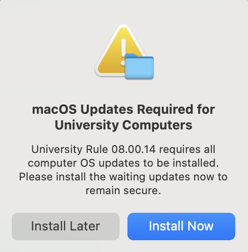 *Note: We recommend performing macOS updates manually once you are notified which will be prior to any mandated deadline.