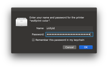 - Click OK and locate a FollowMe WolfPrint Printer to release your job.