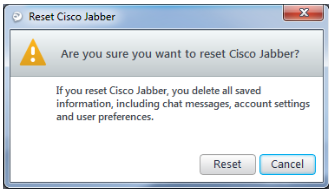 Click Reset on the Reset Cisco Jabber window.