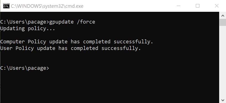 - Type gpupdate /force (note the space before the slash) and press enter.