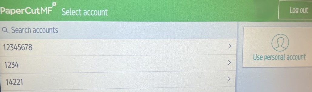 2. When using Mobility Print to print from your personal device, print from any application using the appropriate print command (file -> Print). At the device, after you log in to release your print job, choose a Shared Account from the list available.
