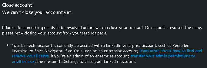If a User needs to close their LinkedIn account after connecting their Unity Account for LinkedIn Learning access, they will need to disconnect the accounts first.