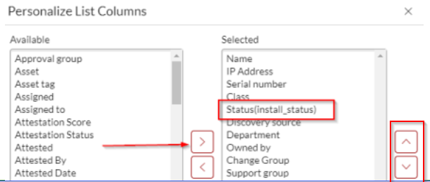 To update personalized columns, click the gear icon at the top right portion of the list to view then add the “Status(install_status)" field and be sure you're in the correct Class.
