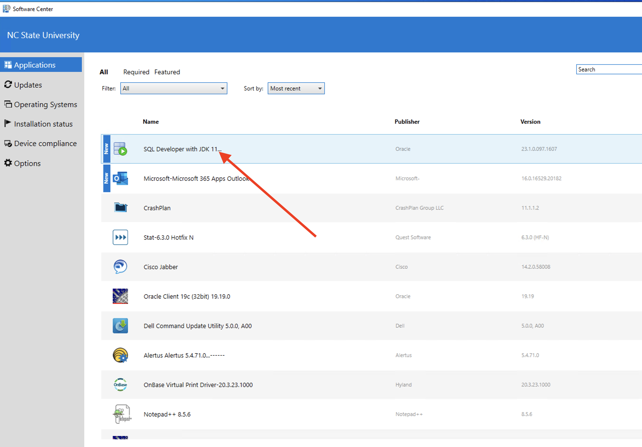Once the “SQL Developer with JDK 11” installation process is complete, you should see the word “Uninstalled” displayed under the installation status in the Software Center.