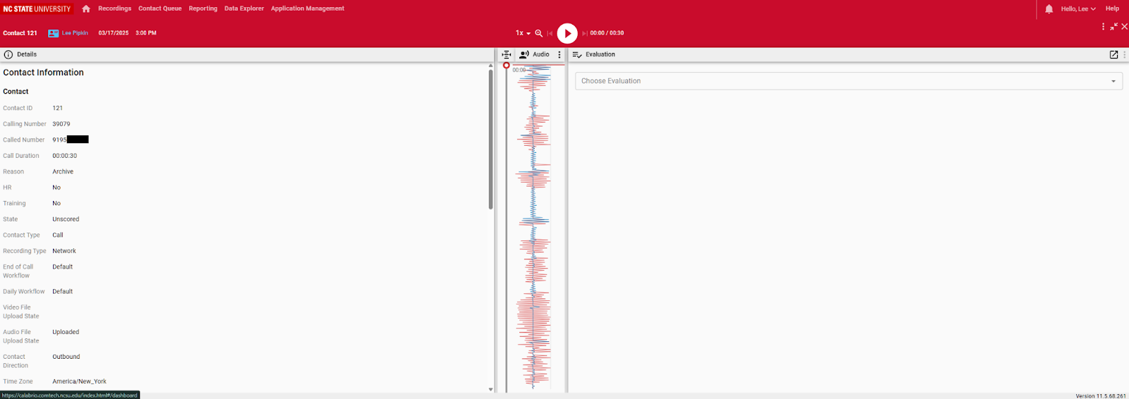Double-click the call recording to play it in your browser. Playback controls are located at the top center of the webpage.
