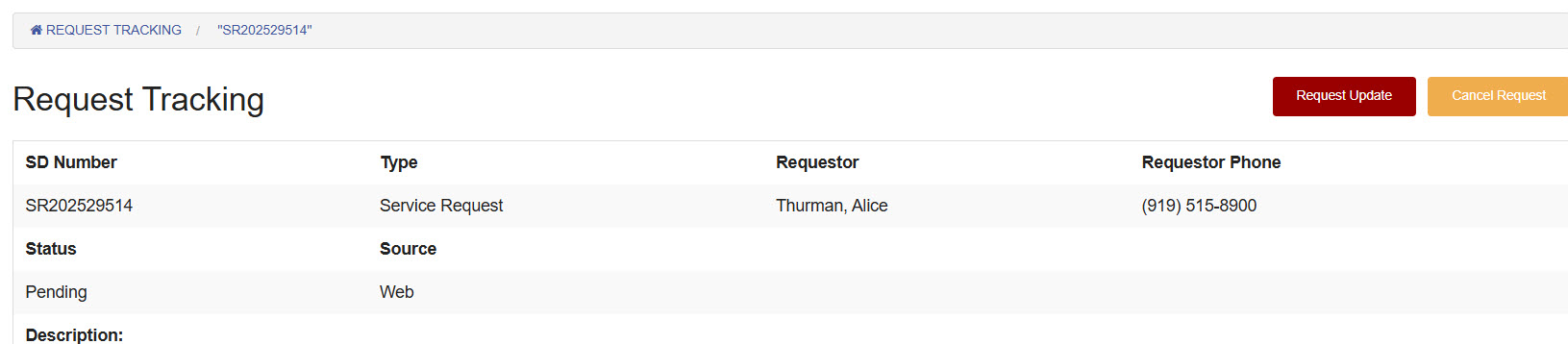 Note: You can only cancel a request if it is listed as a Service Request (SR number). Once the Request has been assigned and turned into an Order (SO number), the Cancel Request button will not display. You must contact Customer Service by phone: 5-7099, option 3, or by email: customer_service@ncsu.edu to change your request once it’s become an Order.