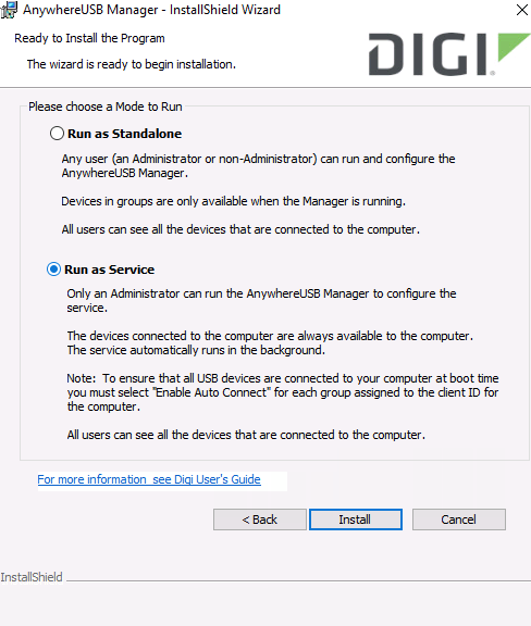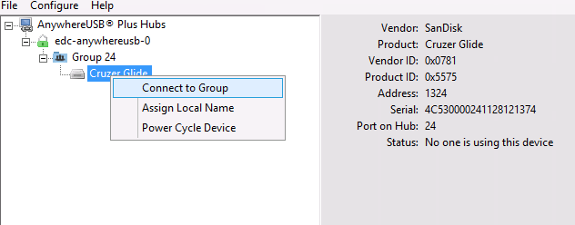 The AnywhereUSB client software is required to be installed on the endpoint. The software installer is provided upon request.
