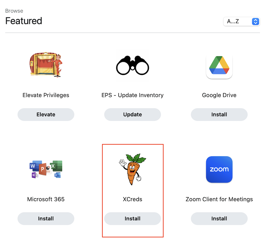 Click this link to launch Self Service, and immediately execute the XCreds installation policy.