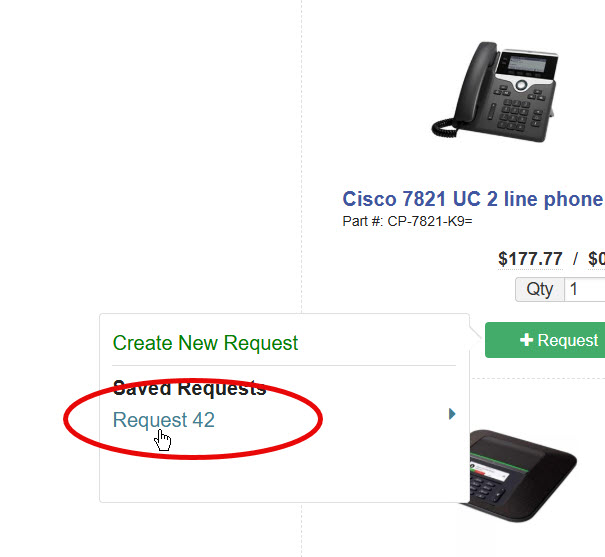 - Choose your phone and click the green +Request button to add the phone to your request (the Saved Request you created above).