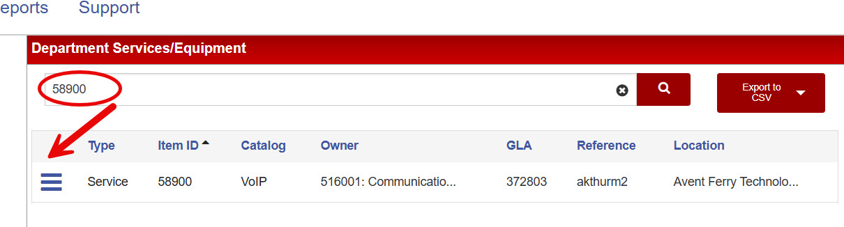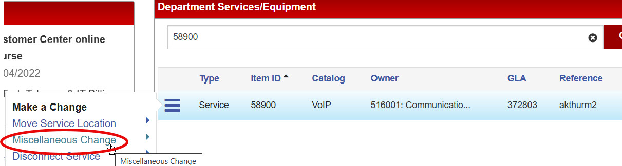 - From the Customer Center's home page, in the Department Services/Equipment section, search for the phone number requiring a new phone—the last five digits only.